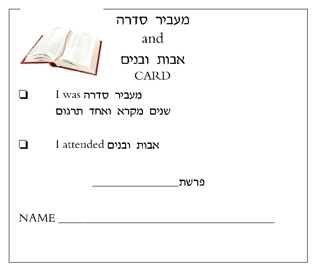 Maavir Sedra & Avos Ubonim Card Click on the card to download.
